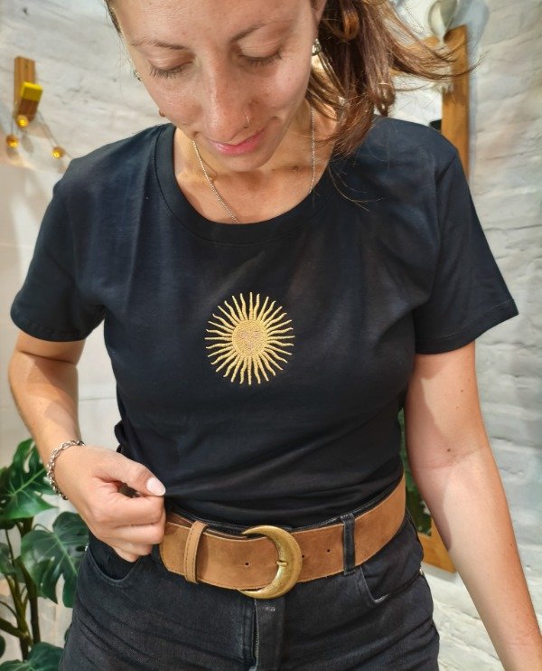 Material: algodón peinado. Sol bordado.